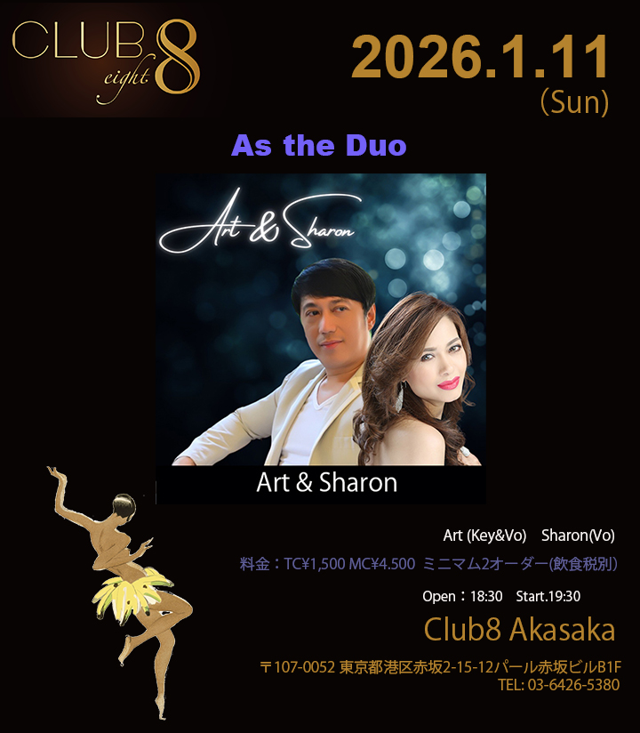 1/11(日)【As the duo 】 Art(Key&Vo) Sharon(Vo) Open: 18:30 Start: 19:30〜 料金(税別):TC ¥1500+MC¥4500 ※2ドリンク以上のオーダ […]