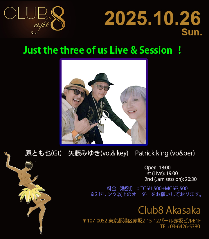 10/26(日)【Just the three of us Live & Session!】Just the Three of Us:Patrick King(Vo& per)矢藤みゆき(V […]