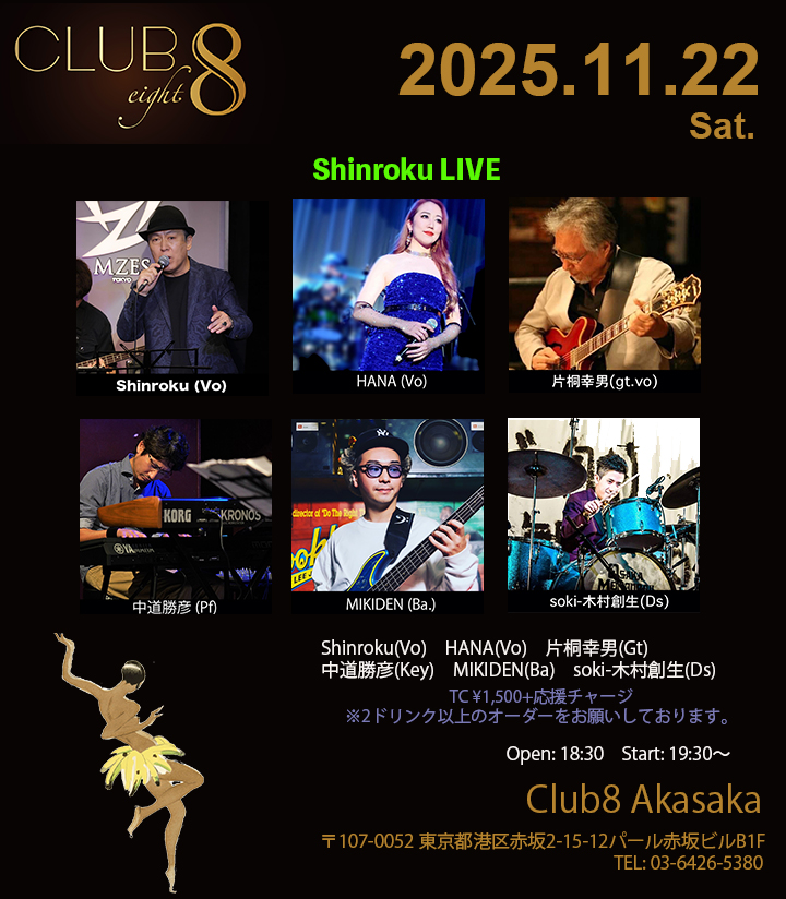 11/22(土)【Shinroku LIVE 】Shinroku(Vo)HANA(Vo)片桐幸男(Gt)中道勝彦(Key)MIKIDEN(Ba)soki-木村創生(Ds)入れ替え制:1st: Open: 16:00/ S […] |