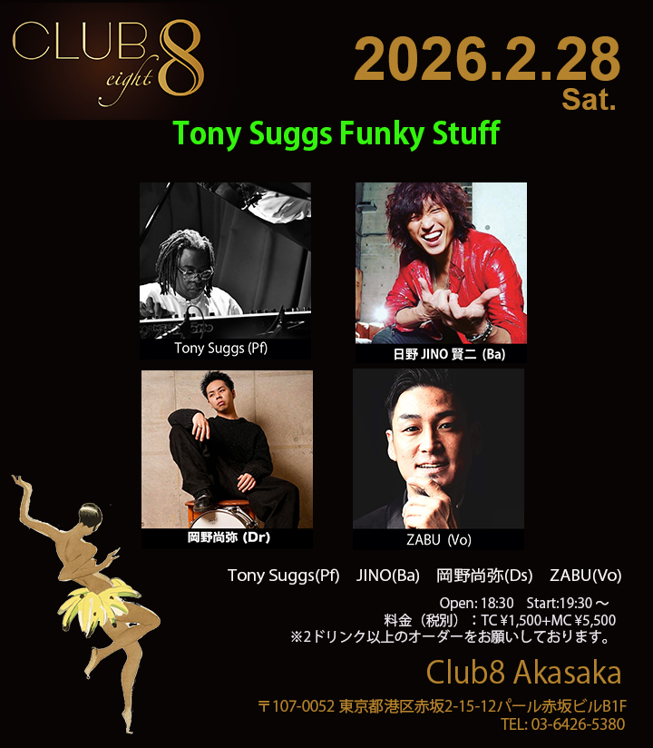 2/28(土)【Tony Suggs Funky Stuff】